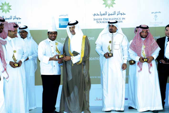 سلم صاحب السمو الملكي الأمير سلطان بن سلمان بن عبدالعزيز رئيس الهيئة العامة للسياحة والآثار جوائز التميز السياحي السعودي للفائزين بها في دورتها الخامسة، وذلك في الحفل الذي أقيم برعاية سموه اليوم الاثنين في المتحف الوطني بالرياض. كما قام سموه بتسليم "جائزة رئيس الهيئة العامة للسياحة والآثار الخاصة" والتي فاز بها كل من: صندوق الاستثمارات العامة، ومجموعة ارامكو السعودية. وكرم سموه الشركة الراعية "أمريكان اكسبرس"، وراعي جائزة الطاهي لشركة الحكير.